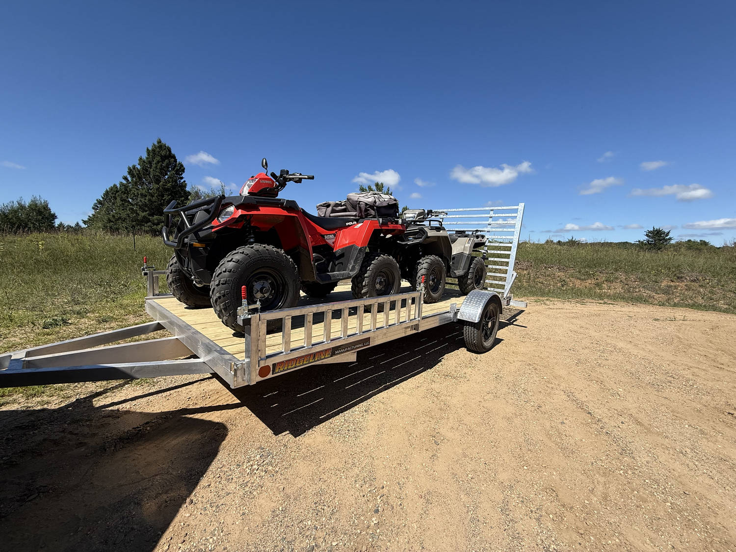 The Ridgeline Infinite Track Utility is an aluminum frame, light, and durable trailer backed by a 5-year structural warranty and is built with the standard features you need. Some to point out are the triple a-frame tongue design, 15″ radial rim & tire, & a beefy ramp that can handle the abuse. Standard lengths include 10′, 12′, 14′ and 15′ single axle,& up to 32′ triple axle units. Thanks for looking at RIDGELINE.